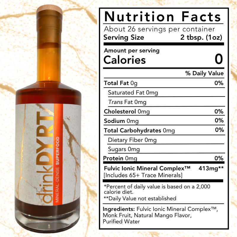 DYRT RESERVE helps build strong, energized cells so your body can perform at its best. This high-impact mineral shot delivers 65+ essential minerals directly to your cells.